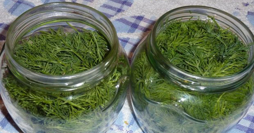 მოაცალეთ სქელი ღეროები და ფოთლები ჩააწყვეთ ქილაში.