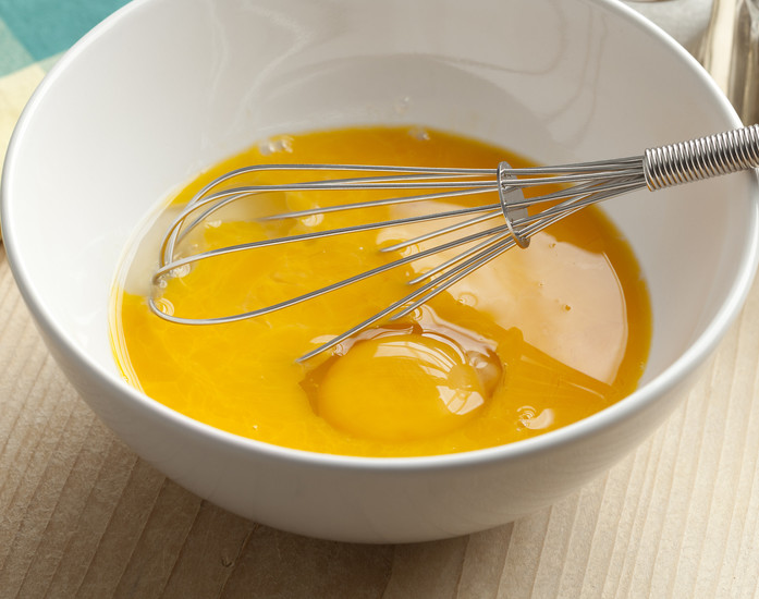 - შეურიეთ კვერცხის გულები და ლუდი, სანამ ერთგვაროვან მასას მიიღებთ.